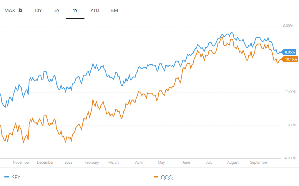 SPY vs QQQ - 하락폭 비교