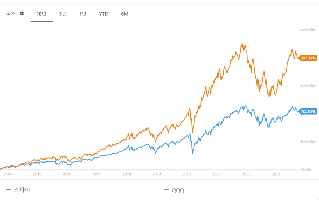 SPY vs QQQ - 성장률 비교