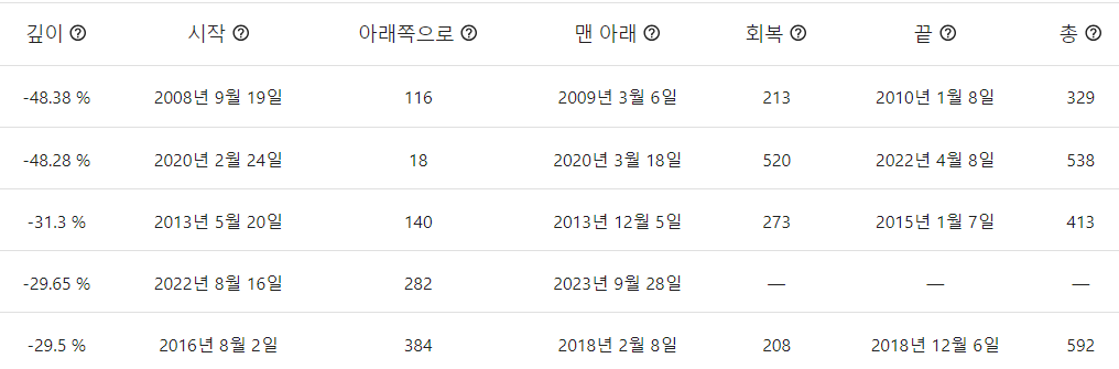 아래 표는 리얼티인컴 의 최대 손실액을 보여줍니다 . 최대 감소는 위험의 지표입니다. 일련의 거래 손실로 인해 포트폴리오 가치가 최대치에서 감소한 것을 보여줍니다.