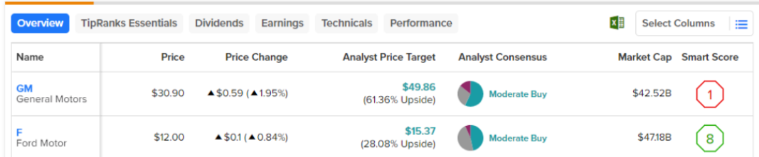 General Motors와 Ford는 모두 긍정적인 평가를 받았지만 그 이유는 완전히 다릅니다. GM은 긍정적임에도 불구하고 정서가 주가를 억제함에 따라 Ford에 비해 대폭 할인된 가격에 거래되고 있습니다. 이는 제가 일시적인 상황이라고 생각합니다. 반면, 포드는 주가에서 장기적으로 긍정적인 모멘텀을 누리고 있으며, 단기적으로는 아니더라도 추가적인 상승 여력이 있음을 암시하는 펀더멘털을 누리고 있습니다.