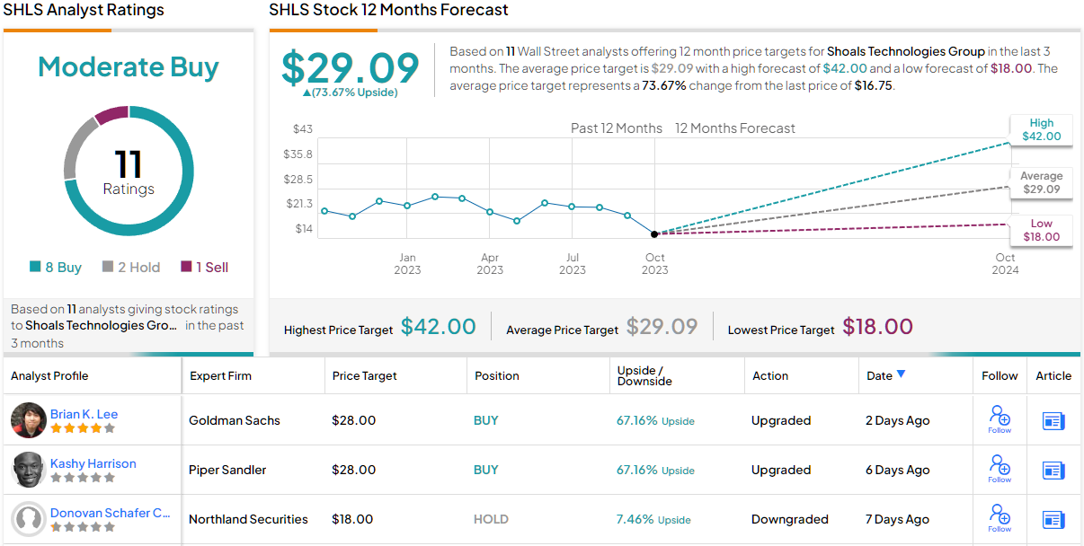 Lee는 "미래를 내다보면 (i) 최근 보증 비용 문제로 인한 초과행이 가격에 반영된 것으로 보이고 이제 마진 상승 위험이 상승쪽으로 치우쳐 있고 (ii) 미국 유틸리티 규모의 태양광 발전을 고려하면 전술적으로 더 낙관적입니다"라고 말했습니다. 펀더멘털은 우리 태양광 커버리지 그룹에서 최고 수준을 유지하고 있으며 2024년 강력한 성장 배경으로 향하는 여러 촉매제를 여전히 볼 수 있습니다. SHLS가 ~20X NTM P/E로 거래되면서 가치 평가는 역사적 최저 수준에 있으며 위험이 있습니다. -최근 주식에 부담을 주고 있는 독특하고 거시적인 문제에도 불구하고 무시하기 어려운 보상을 제공합니다." Lee는 자신의 입장을 정량화하여 SHLS를 매수로 평가하여 목표 가격 28달러를 유지했습니다. 투자자에게 미치는 영향? 현재 수준 대비 상승 여력은 67%입니다.