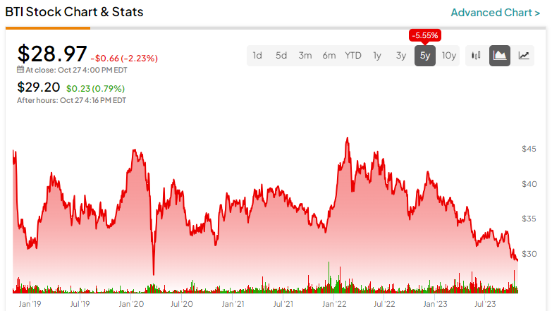 누군가가 오늘날의 시장에서는 어떤 할인 상품도 없다고 말한다면, 그 사람은 충분히 열심히 보고 있지 않은 것입니다. 브리티시 아메리칸 토바코( NYSE:BTI )를 예로 들어 보겠습니다. 나는 런던에 본사를 둔 담배 및 니코틴 제품 대기업에 대해 낙관적입니다. 이 회사는 엄청나게 저렴한 가치로 거래되고, 엄청난 배당 수익률을 특징으로 하며, 어려움에 직면하면서도 오랫동안 시간의 시험을 견뎌온 비즈니스 모델을 가지고 있기 때문입니다.