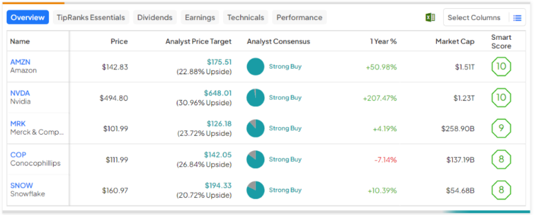 분석가로부터 Strong Buy 등급을 받았으며 가격 목표가 20% 이상의 상승 잠재력을 반영하는 5개의 성장주를 최종 후보로 선정했습니다. 또한 이러한 주식은 우수한 스마트 점수 (즉, 8, 9 또는 10)를 나타냅니다. 마지막으로, 이들 회사의 수익은 지난 5년간 10%가 넘는 연평균 성장률을 기록했습니다.