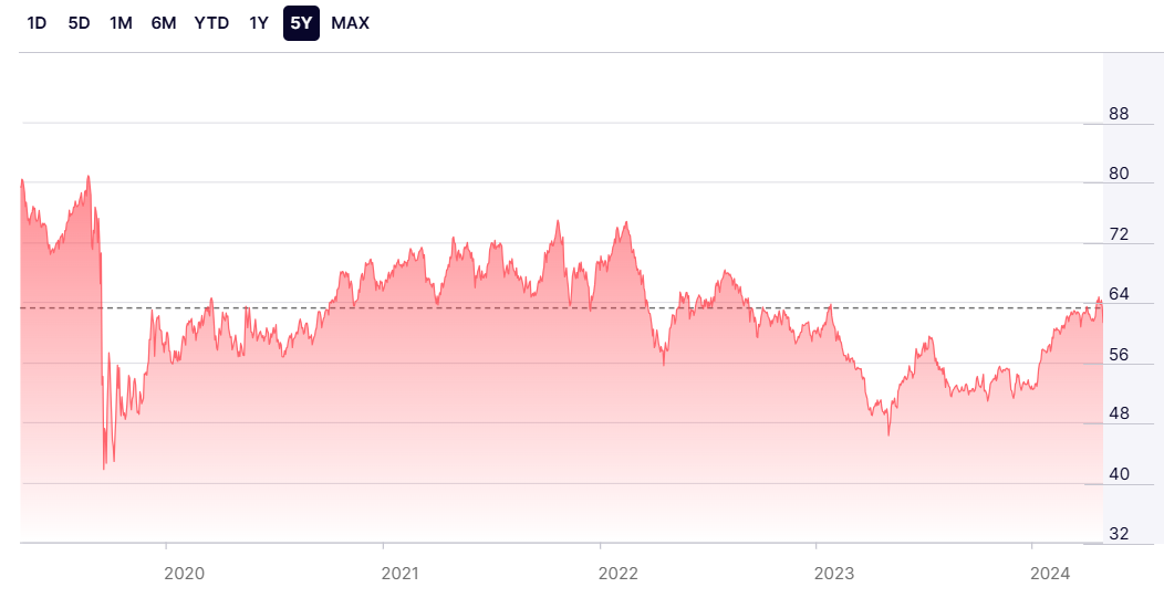 마지막으로, 프랭클린 리소스(NYSE: BEN) 를 S&P 500 배당주도 눈여겨 볼 종목입니다. 2021년 팬데믹 이후 최고치에서 43% 하락했고, 2013년 말에 기록한 최고치에서 무려 65% 하락했습니다. 이러한 약세로 인해 미래 배당 수익률이 건강한 6%까지 상승했습니다.