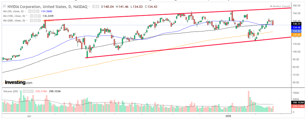 현재 엔비디아 주가는 134.43달러로, 올해 1월 기록한 사상 최고가(153.13달러) 대비 약 12% 낮은 수준이다. 시가총액은 3.31조 달러에 달하며, 이는 애플(AAPL)에 이어 미국 증시에서 두 번째로 높은 수준이다. 전반적으로 강력한 성장세와 AI 시장 내 경쟁 우위를 고려했을 때, 엔비디아는 이번 주 주목할 만한 매수 종목으로 평가된다.