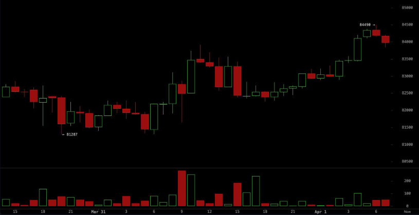 4월 1일, 2025년 비트코인은 $83,882로 시작했으며, 시장 시가총액은 $1.66조, 24시간 거래량은 $28.60억을 기록했습니다. 비트코인은 $81,287에서 $84,490 사이의 가격 범위에서 움직이며 혼조된 모멘텀을 보였으며, 이동 평균선이 전반적으로 약세를 시사하는 가운데 신중한 상승 기조를 보였습니다.