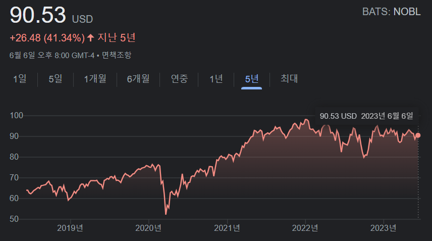 미국 월배당 ETF NOBL의 장점은 다음과 같습니다.