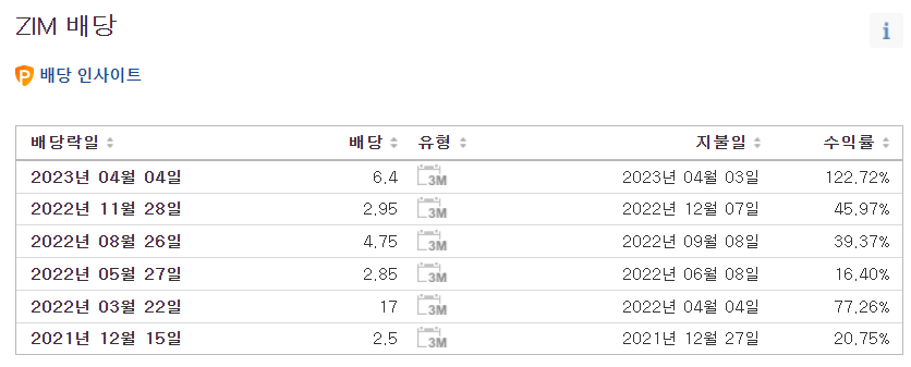 미국 주식 ZIM Integrated Shipping Services 배당 수익률